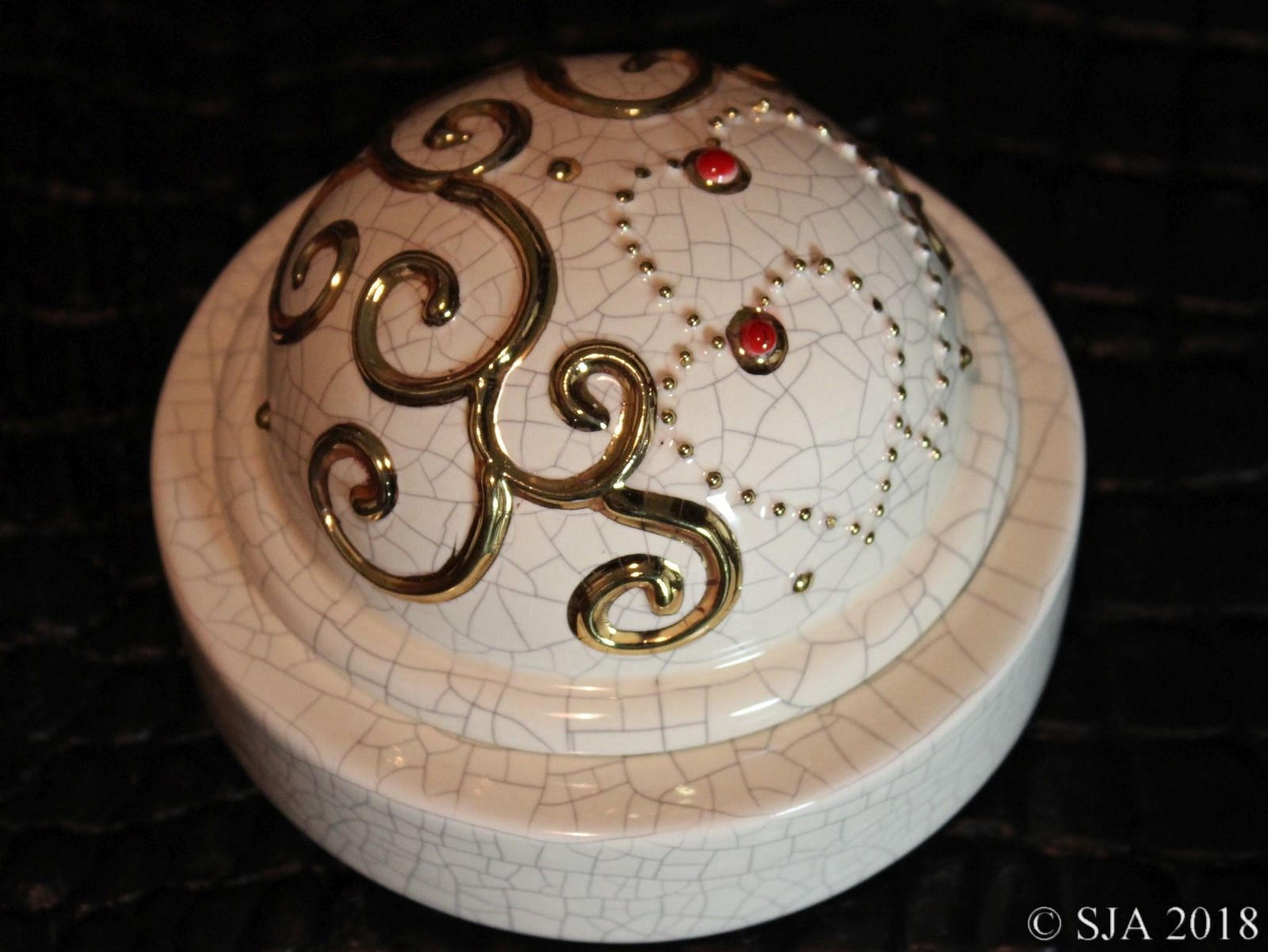 Décor original doré à l'or fin sur fond Ivoire craquelé.