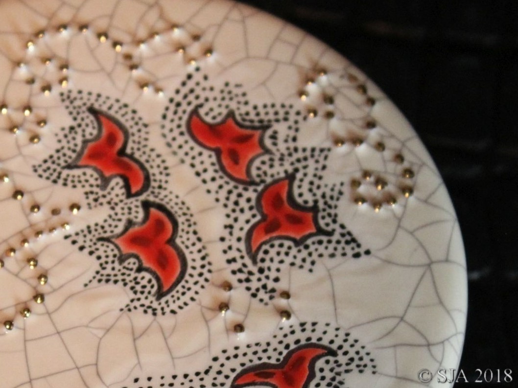 Décor original doré à l'or fin sur fond Ivoire craquelé.
