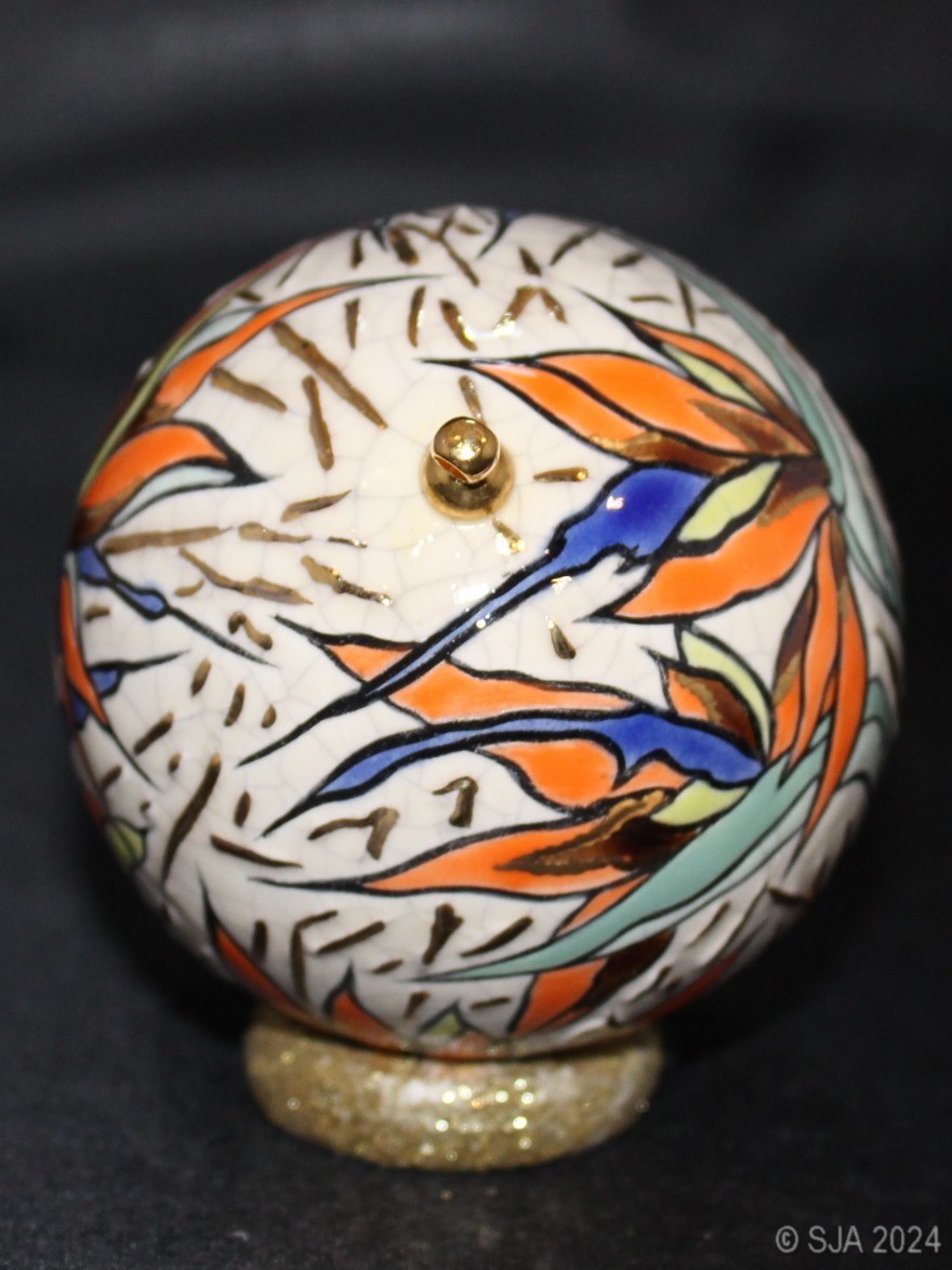 Décor original doré à l'or fin sur fond ivoire craquelé.