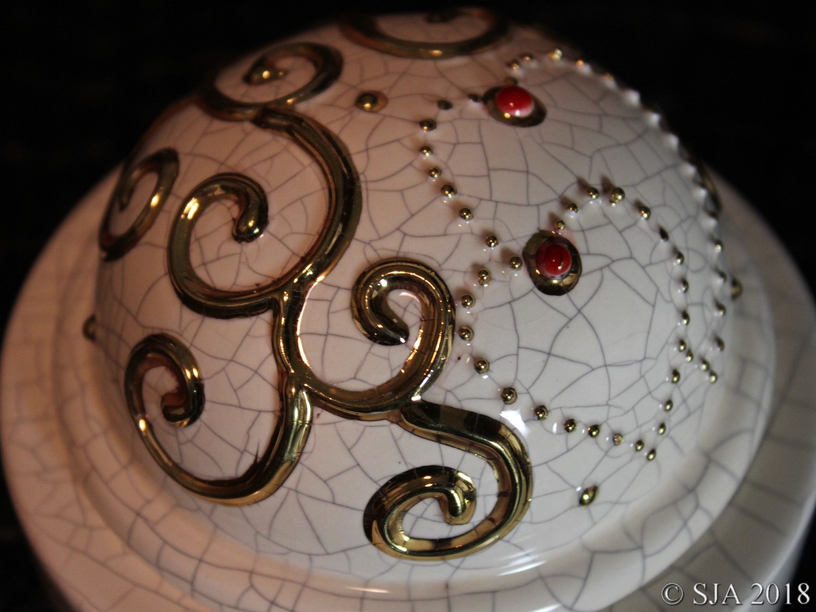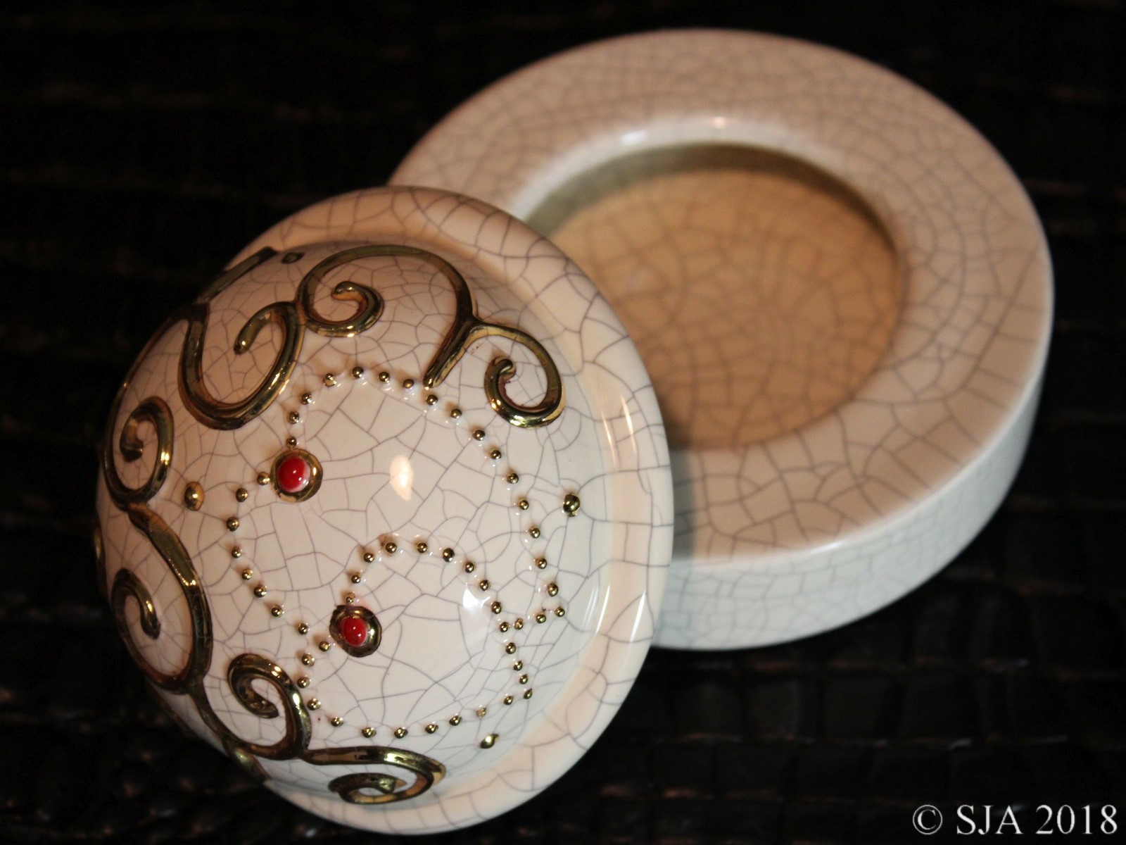 Décor original doré à l'or fin sur fond Ivoire craquelé.