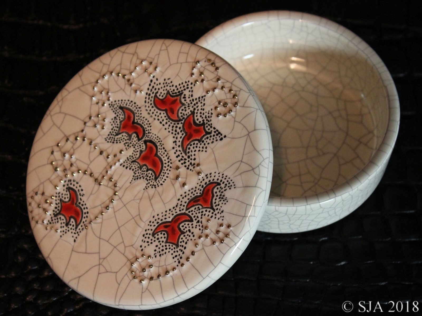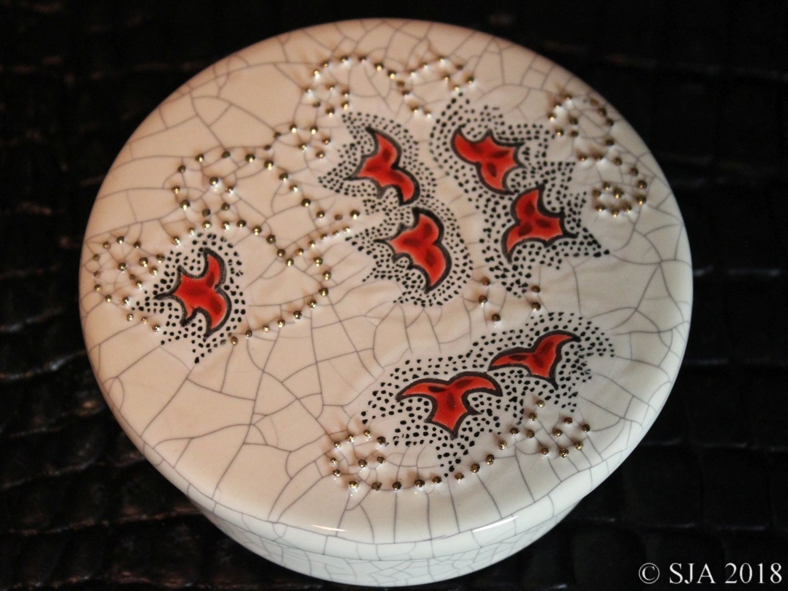 Décor original doré à l'or fin sur fond Ivoire craquelé.