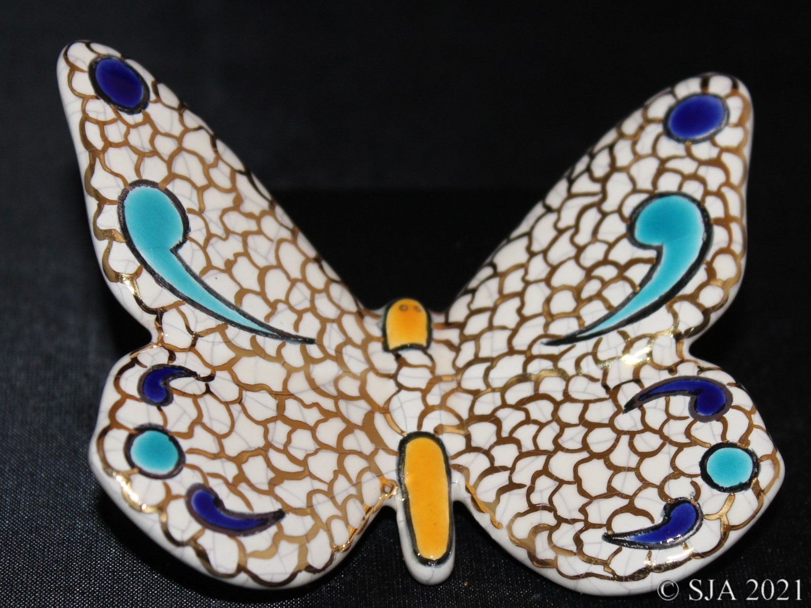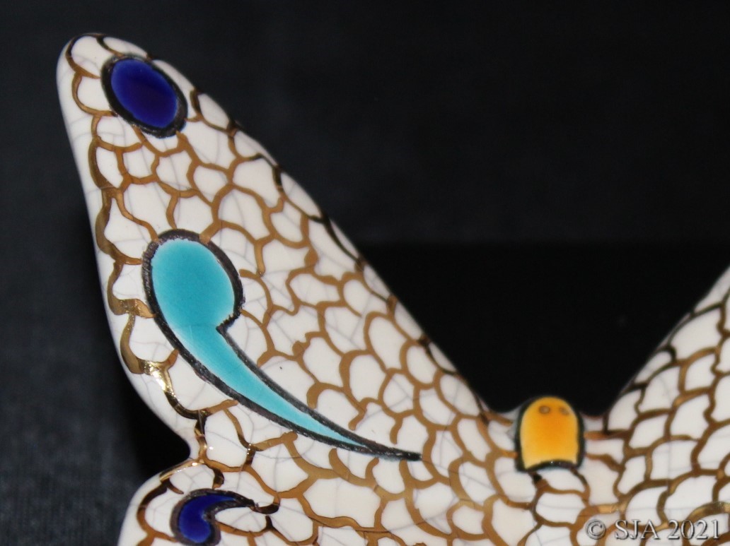 Décor original doré à l'or fin sur fond ivoire craquelé.