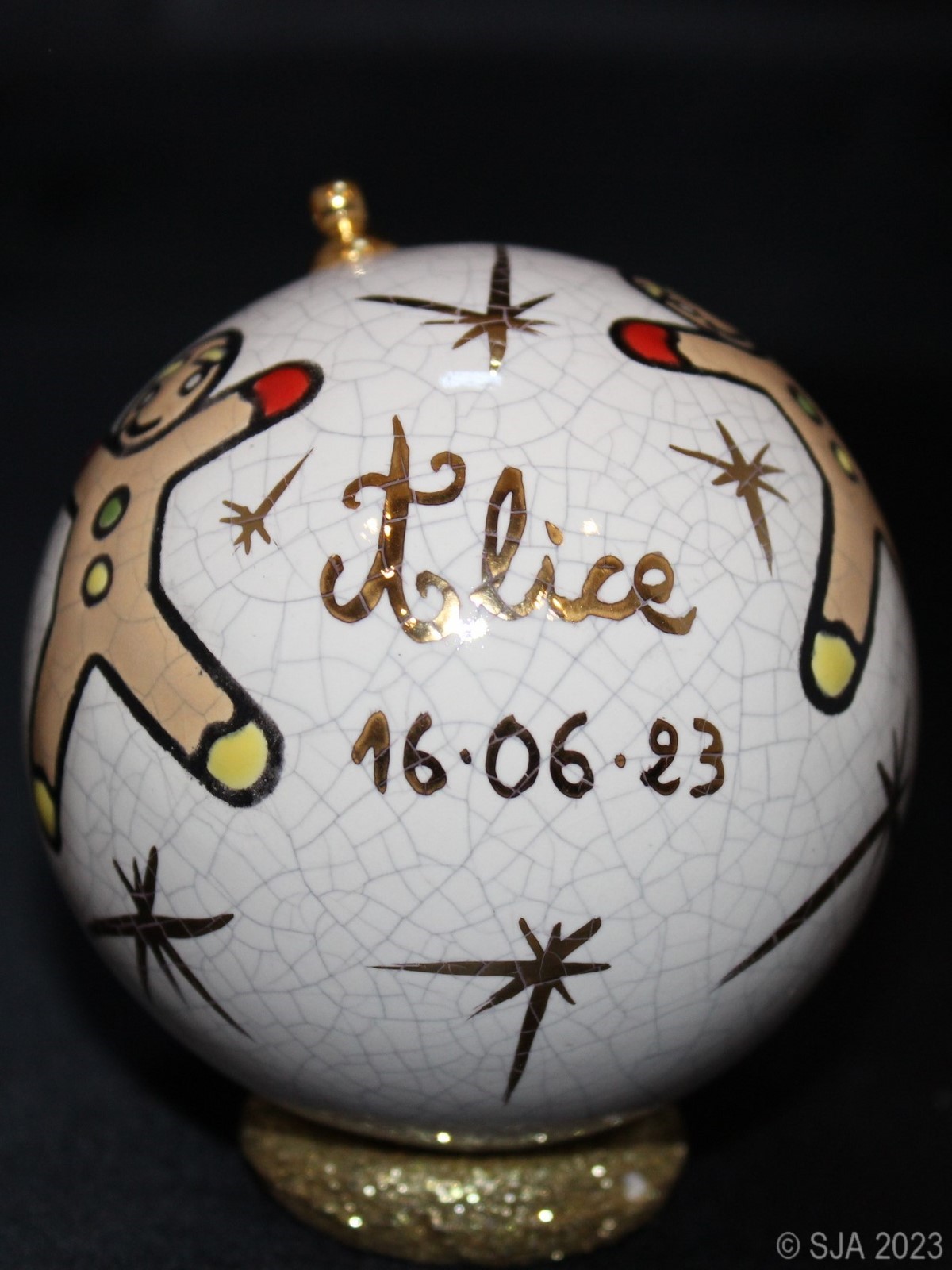 Boule de Noël, fabriquée entièrement à la manufacture et émaillée à la main.