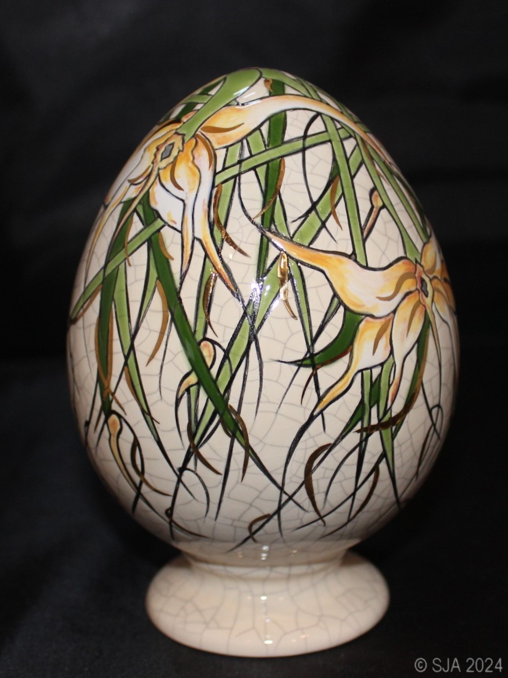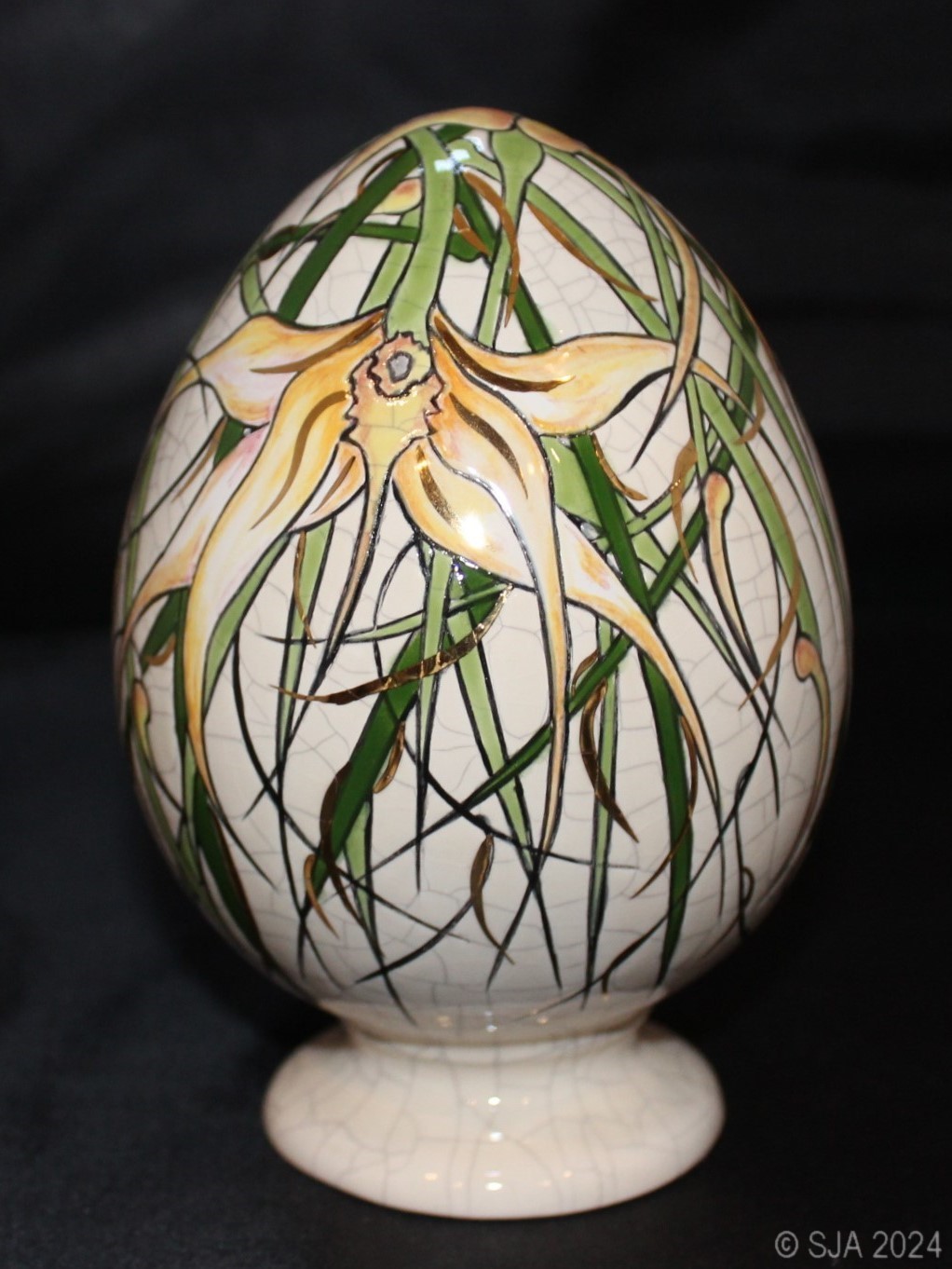 Décor original Lindenii, doré à l'or fin, sur fond Ivoire craquelé.