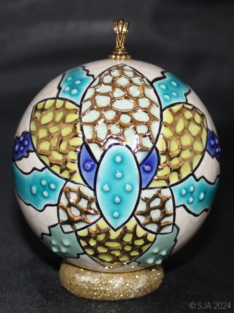 Décor original doré à l'or fin sur fond ivoire craquelé.