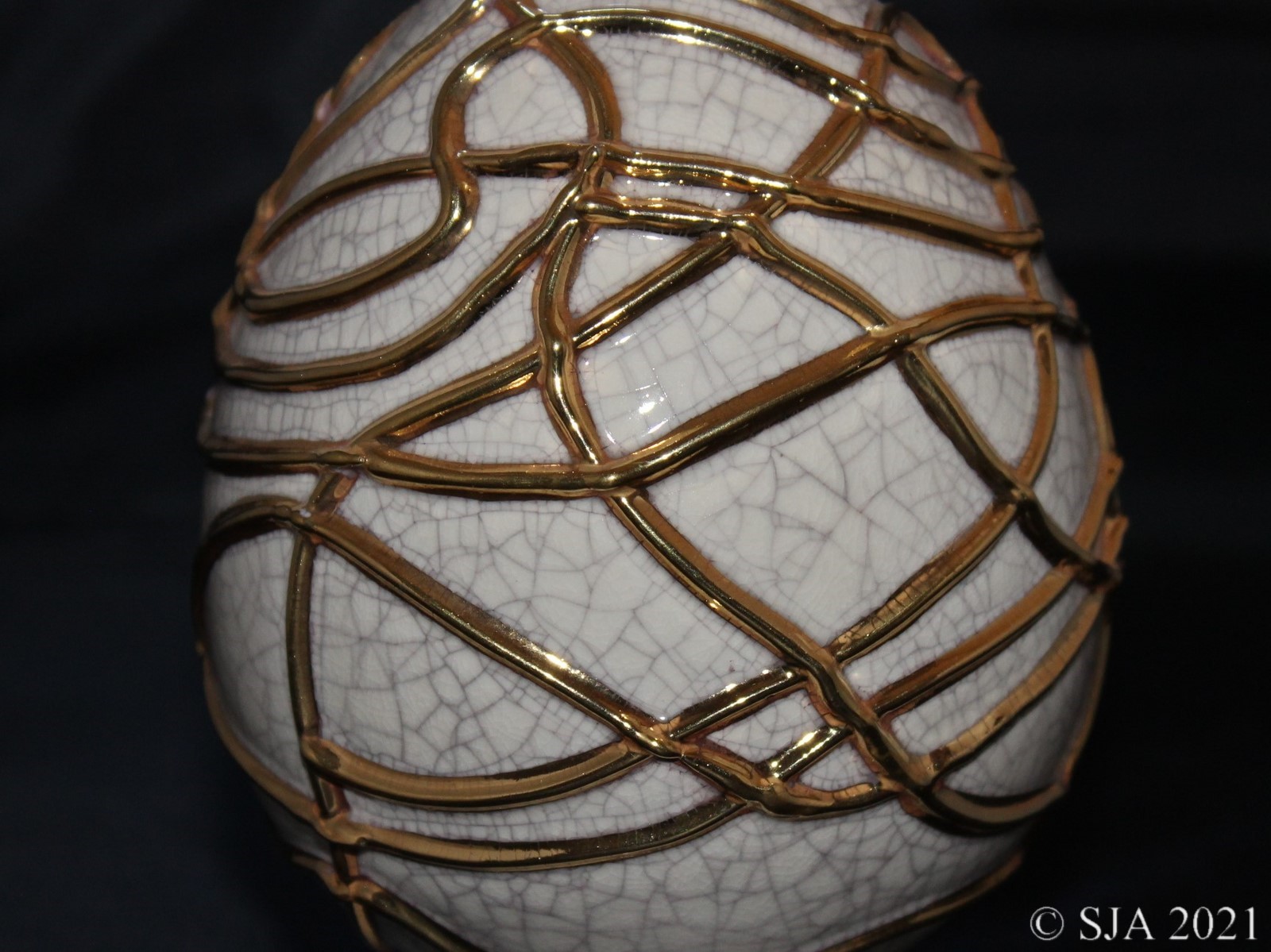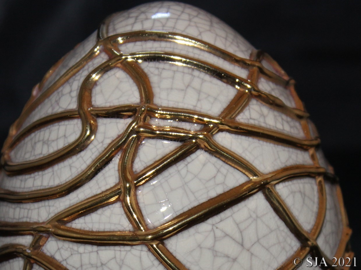 Décor original doré à l'or fin sur fond Ivoire craquelé.