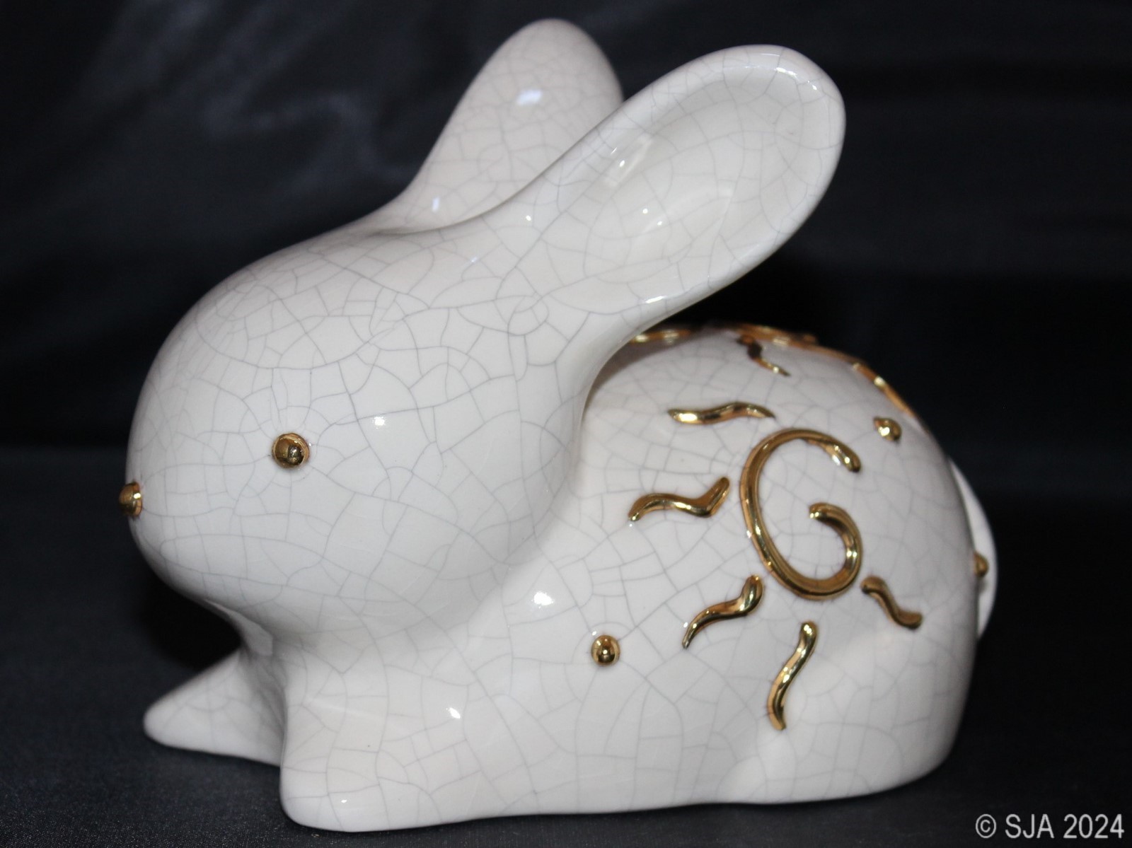 Décor original doré à l'or fin sur fond Ivoire craquelé.
