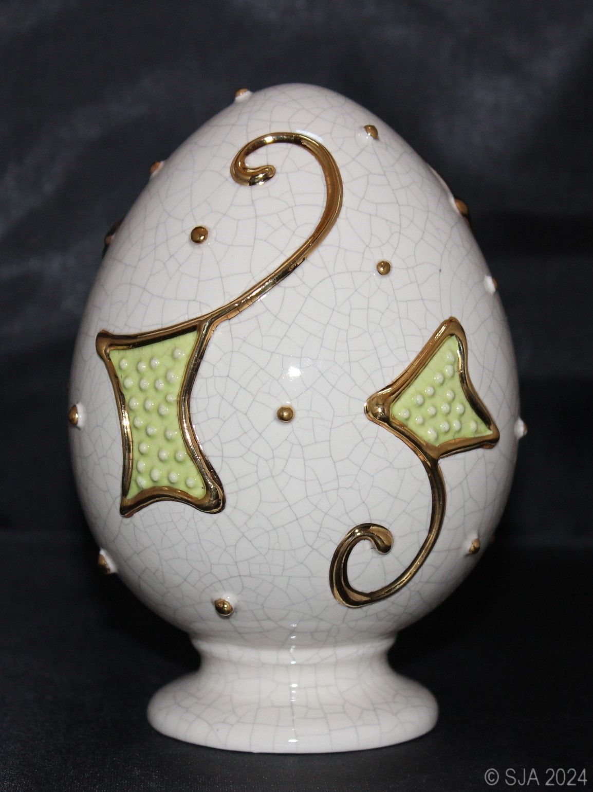 Décor original doré à l'or fin sur fond Ivoire craquelé.