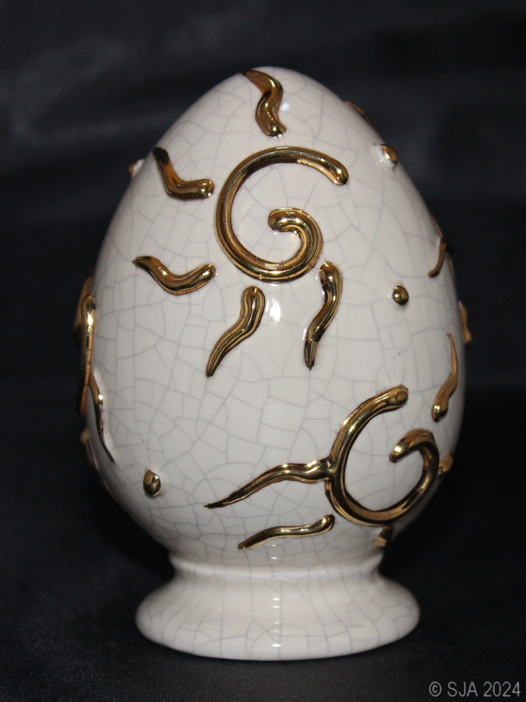 Décor original doré à l'or fin sur fond Ivoire craquelé.