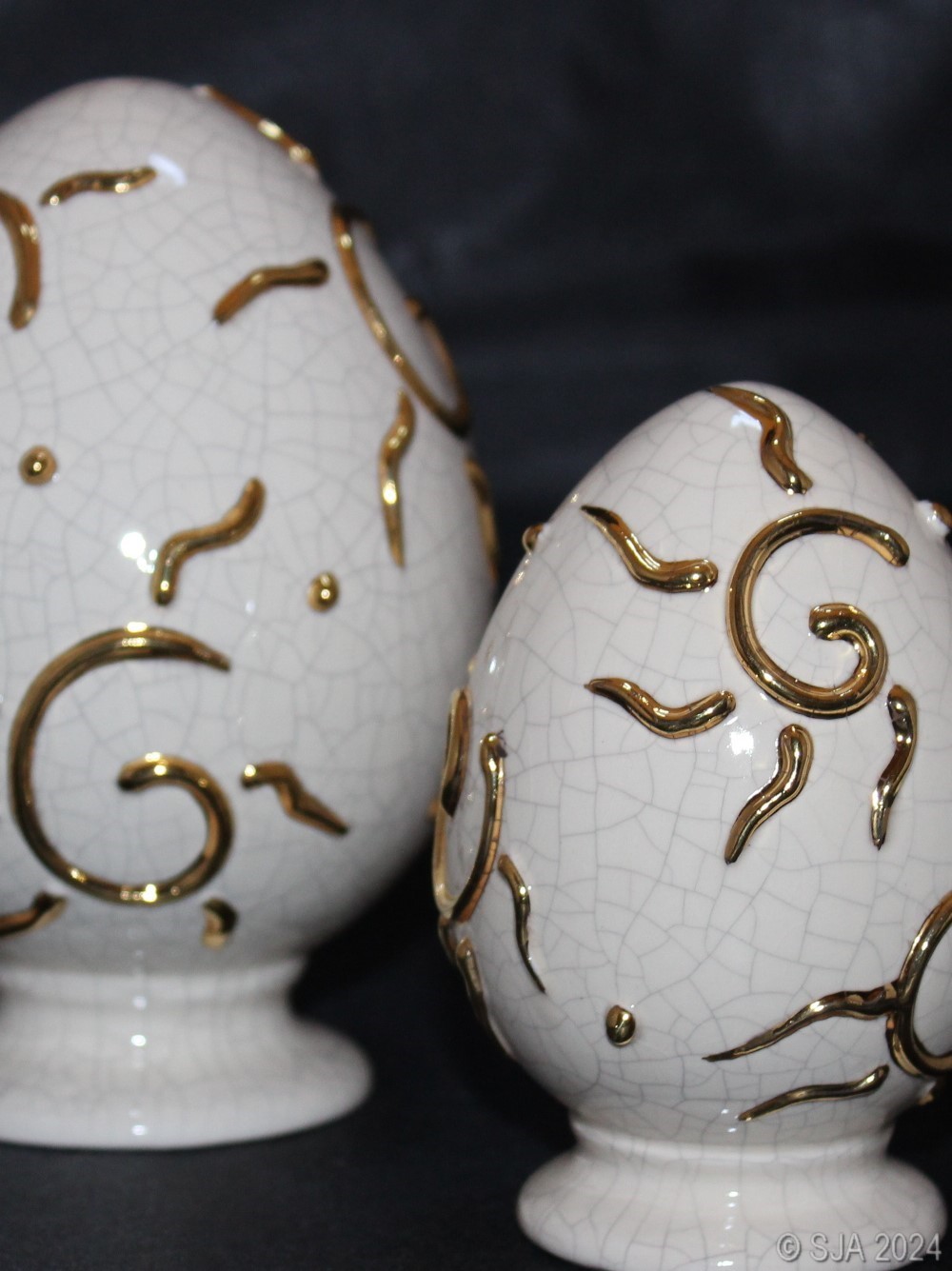 Décor original doré à l'or fin sur fond Ivoire craquelé.