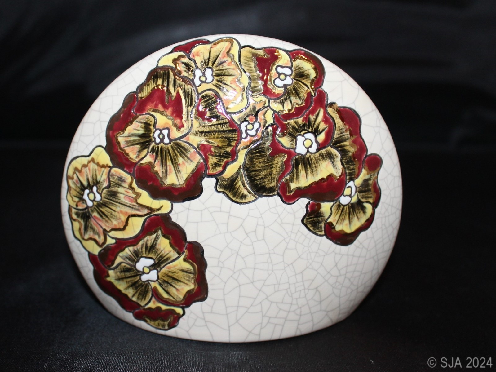 Décor original Pensée, doré à l'or fin, sur fond Ivoire craquelé.